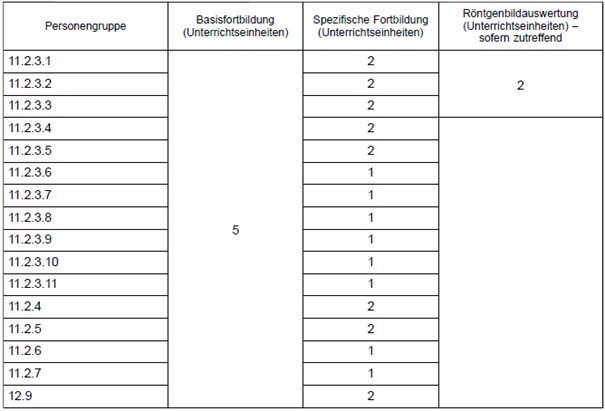 Jährliche Fortbildung zur Aktualisierung rechtlicher Grundlagen, Sicherheitslage, Didaktik und Human‑Factor‑Aspekten für Ausbilder:innen der Personengruppen 11.2.4, 11.2.5, 11.2.6, 11.2.7, 11.2.3.5, 11.2.3.9 und 11.2.3.10. und weitere